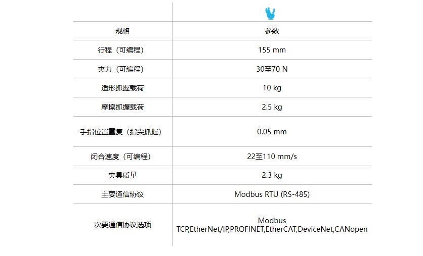 Robotiq 多功能自適應機器人夾持器的參數: