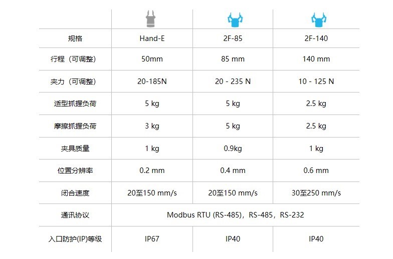 Robotiq 產(chǎn)品的參數(shù):