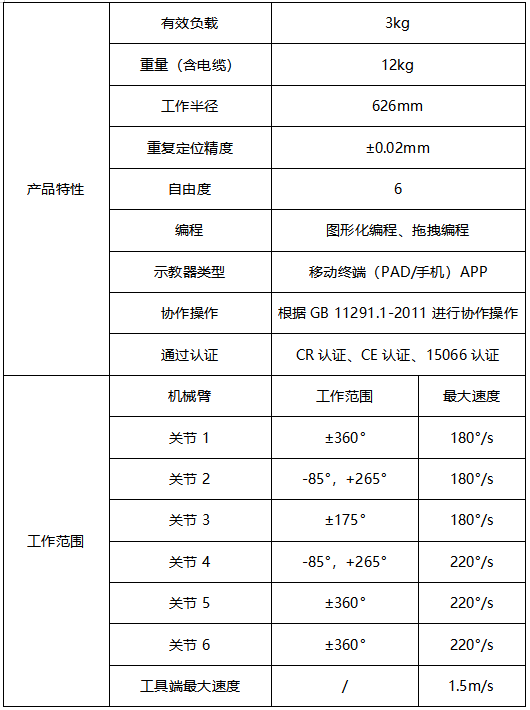 節卡Zu 3協作機器人擁有以下產品特點: