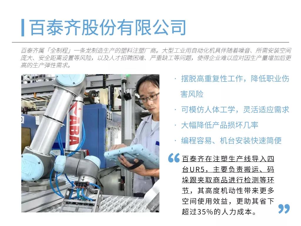 眾所周知,協作機器人憑借低自重、高靈活、易編程、可快速配置、作業空間局限性小等特色優勢,在3C、汽車、機械裝備、傳統家電、食品飲料、醫藥、化妝品等領域都有廣泛應用。